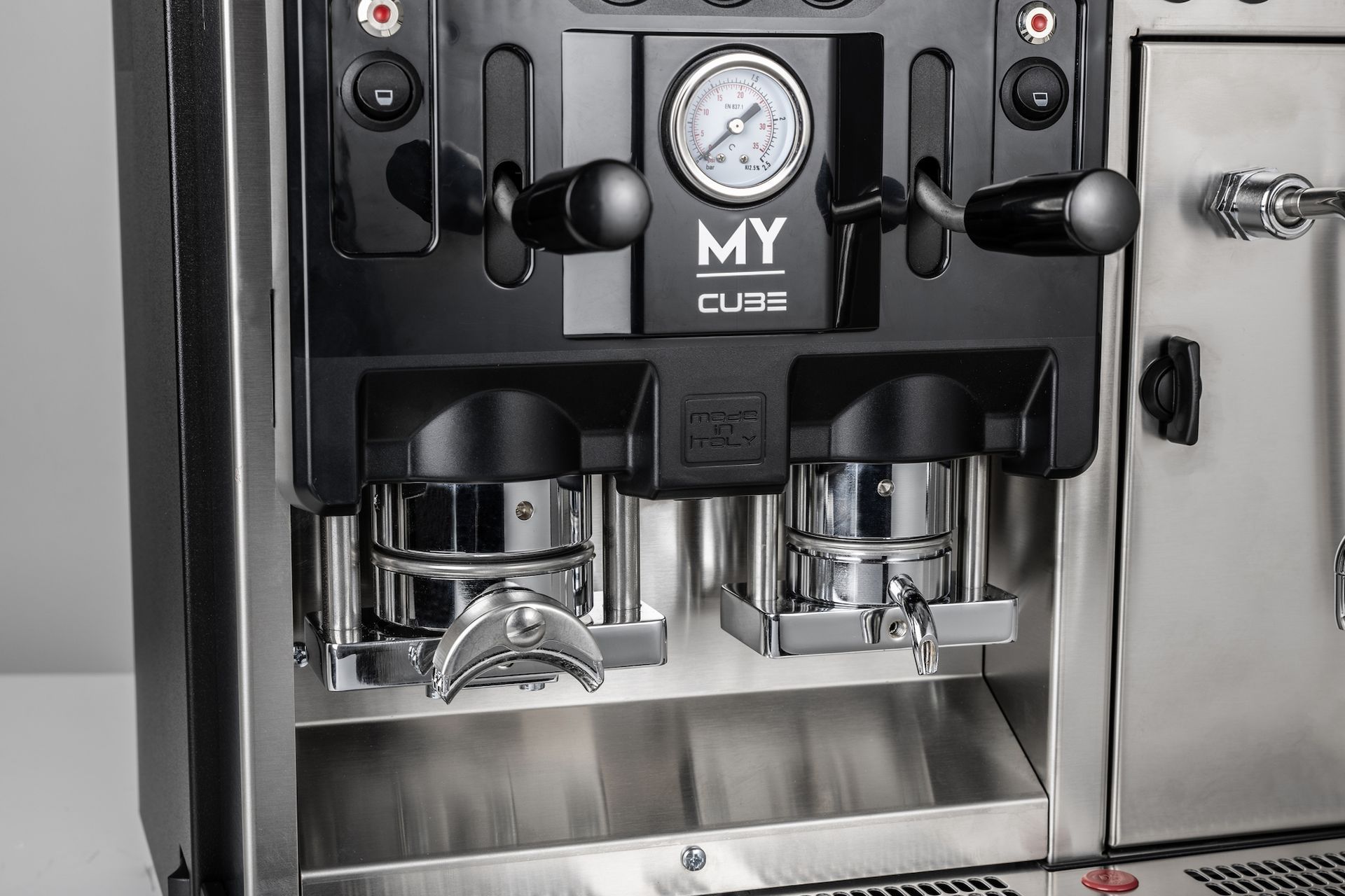 avec les dosettes ESE bi-dose de 14g, le groupe d'infusion est équipé d'un double bec verseur pour faire 2 cafés en même temps